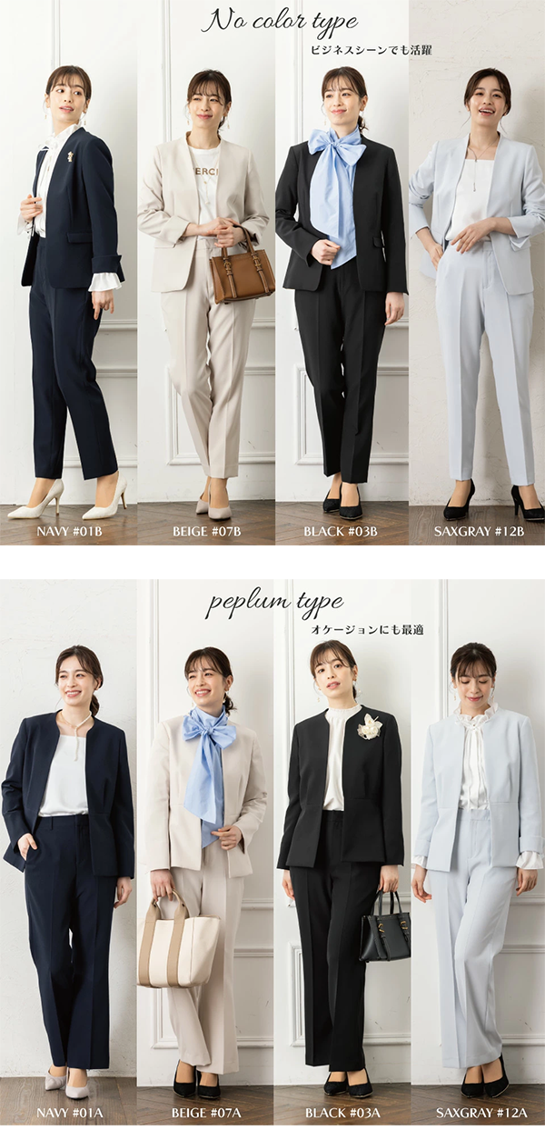 【ペプラムタイプ】【ノーカラータイプ】の2つのタイプから選べます!