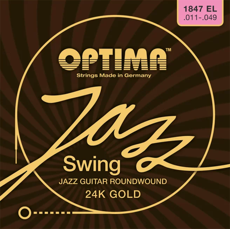 - Optima (オプティマ) 24K Gold Jazz Strings(品番: 1847.EL、ゲージ: .011-.049)は、ドイツで手作りされている純金メッキのエレキギター弦です。
