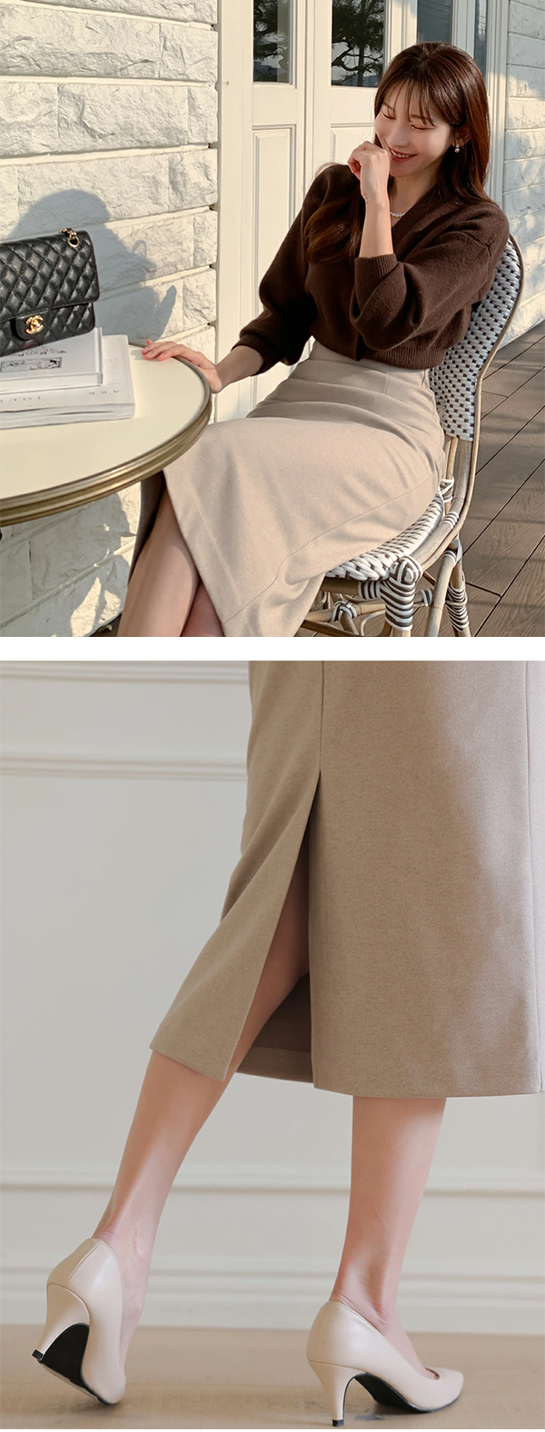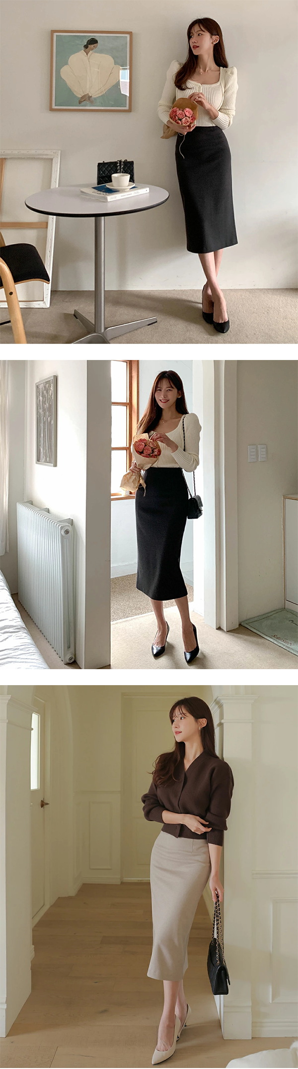 ▶ ベーシックで女性らしい両起毛ダーツラインロングIラインタイトスカート