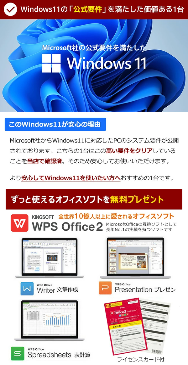 - OS Windows11 Home 64bit 最新OS正式対応で長い目で見ても、安心!