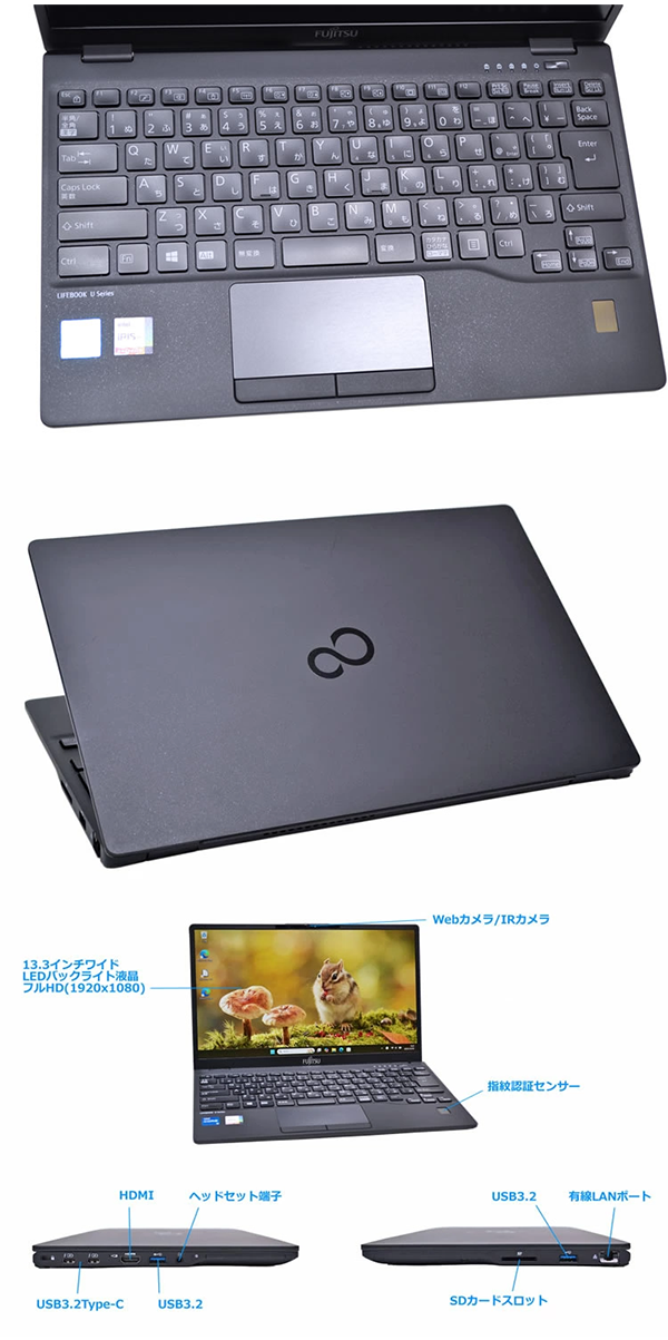 フルHD 13.3型 軽量 富士通 LIFEBOOK U9311/F Core i5 1145G7 IrisXe Wi-Fi6 顔認証 メモリ8G M.2SSD256G Type-C Windows11【中古】 |