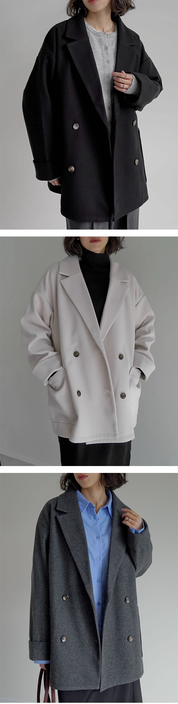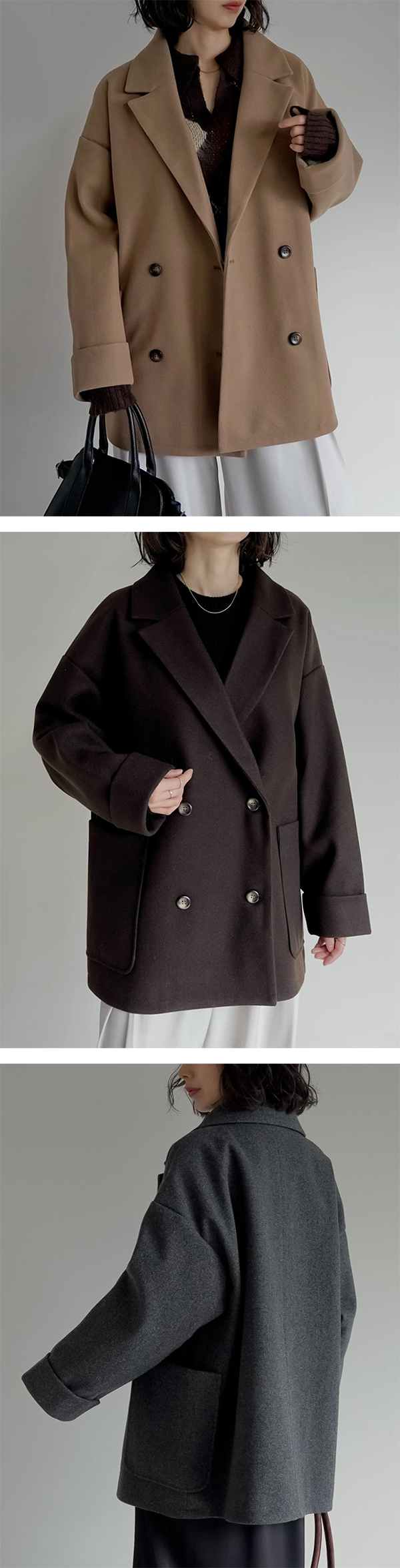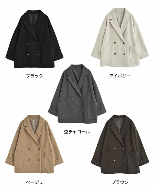 - ドロップショルダーで、ほどよくルーズなシルエットに仕上げたダブルテーラードコート。