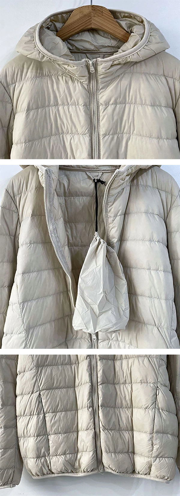 ▶ ポーチ付 ダックダウン 中綿 ジップアップ フード 軽量 ダウンジャケット