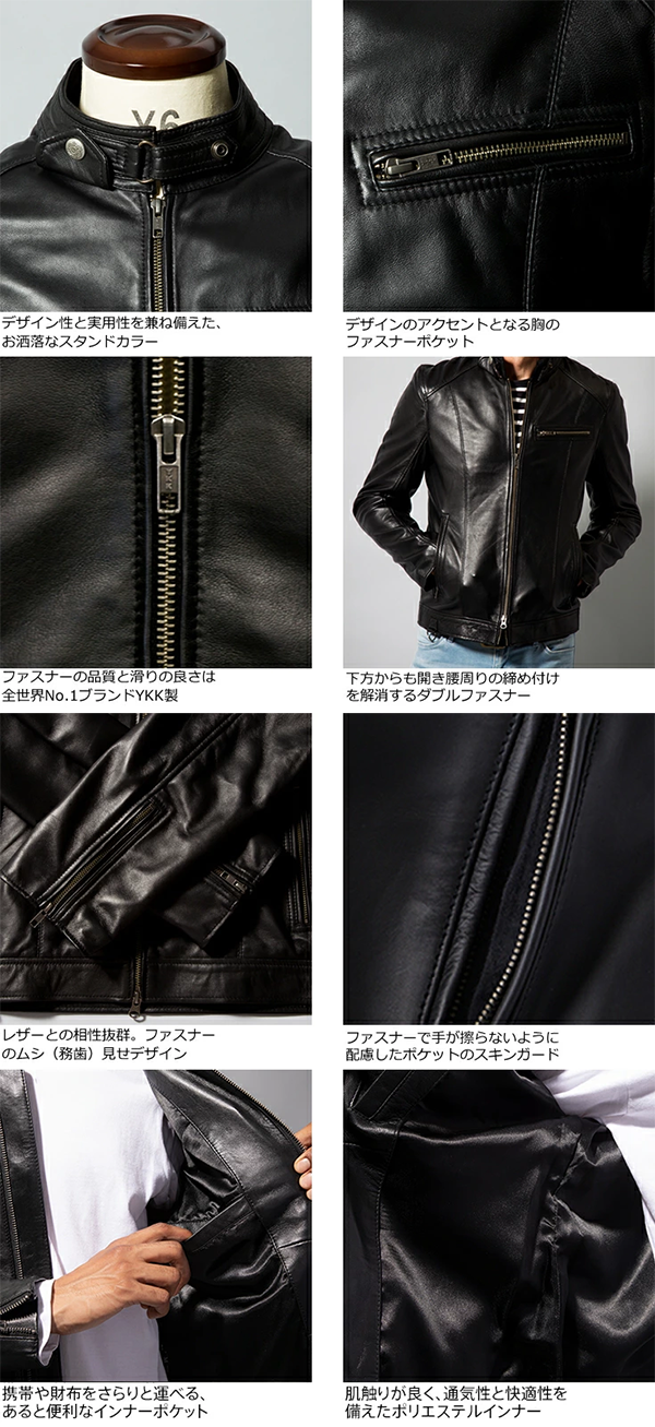 ▶ 気軽に羽織れるシープレザー×飽きの来ないデザイン 本皮 ライダースジャケット