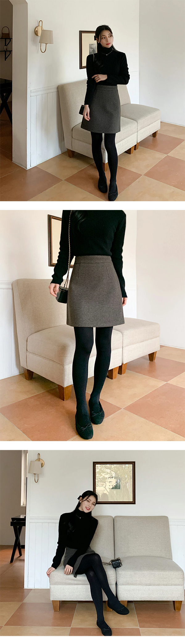▶ 短すぎない上品な丈感がポイントのメルトンタッチミニスカート