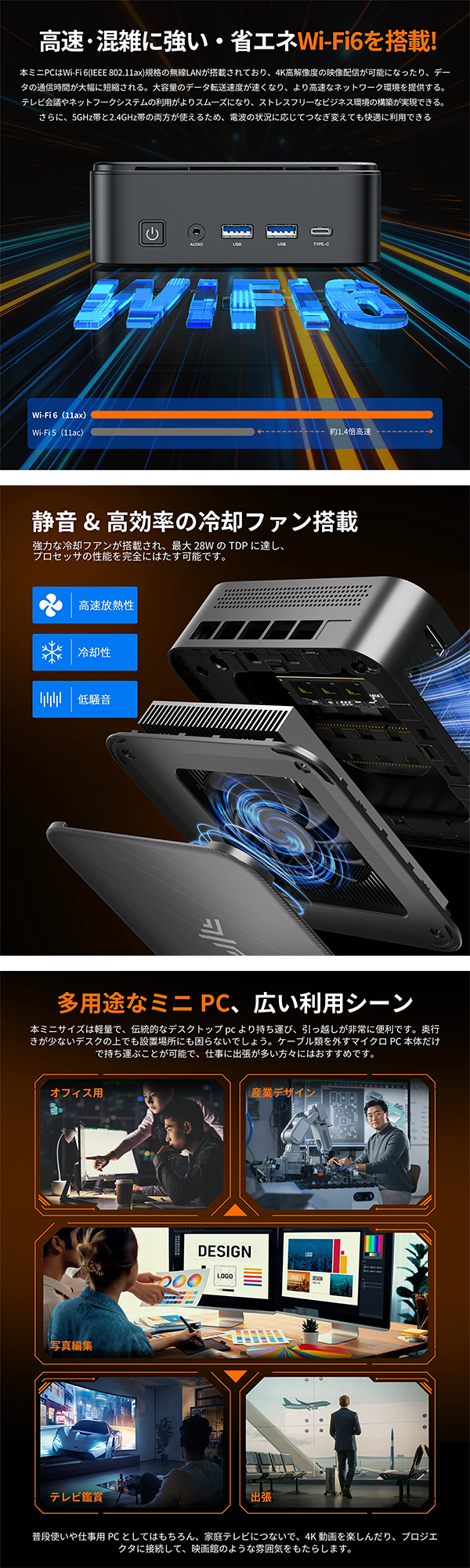 - ウェブ閲覧、動画視聴、日常的な作業から一部のゲーミングまで幅広く対応可能です。