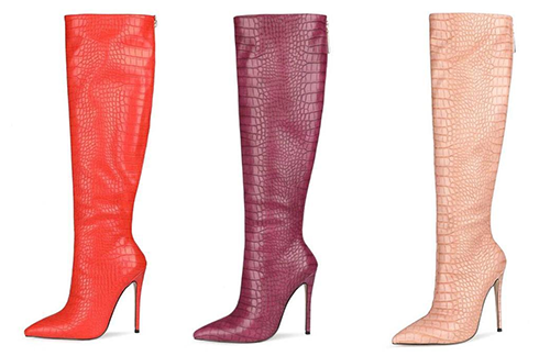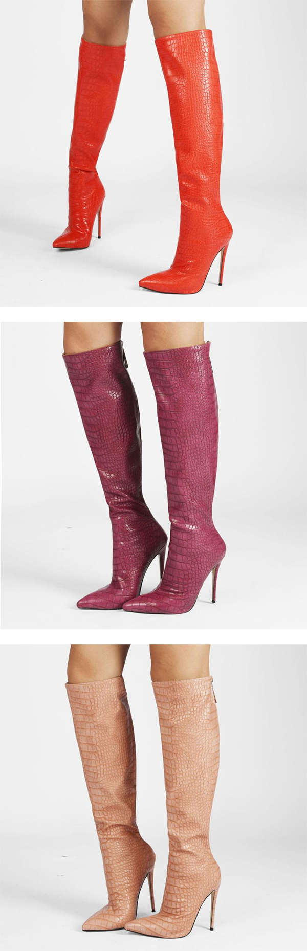 ▶ 楽天市場のサイト: レディース ロング ブーツ ポインテッドトゥ オーストリッチ ピンヒール8cm セキュアデポ