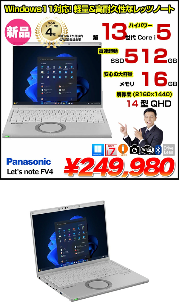 ★【新品】Panasonic Let’s note CF-FV4 ノート Win11 [ Core i7 1360P メモリ16GB SSD512GB カメラ 14型]:新品 |