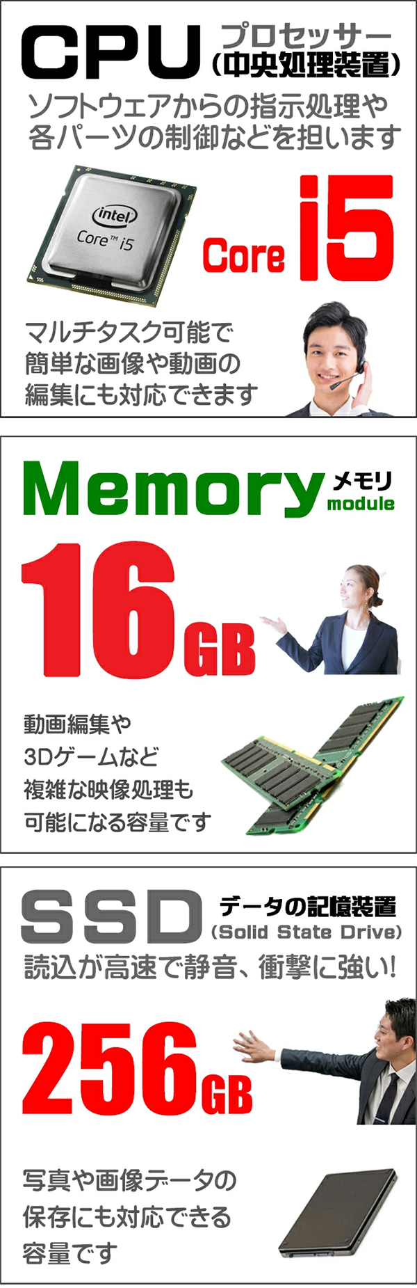 ▶ 【WPS Office搭載】メモリ16GBを実装、ストレージはNVMeSSD256GBと高速・静音仕様
