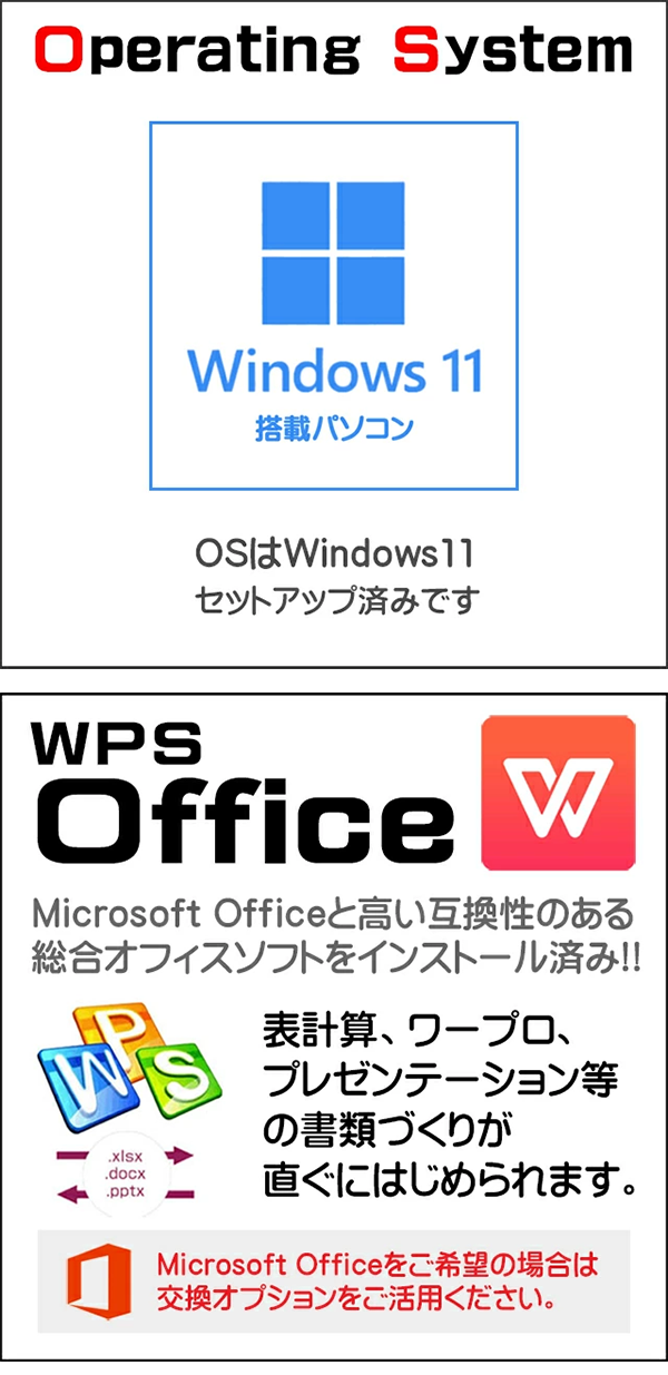 - Officeソフト WPS Office インストール済み(Microsoft Officeと高い互換性)