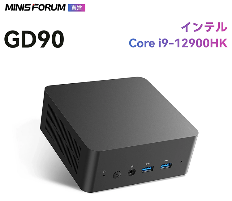 - MINISFORUM GD90は、第12世代Intel Core i9-12900HKプロセッサー、32GB DDR4メモリ、1TB PCIe4.0 SSDを搭載した高性能ミニPCです。