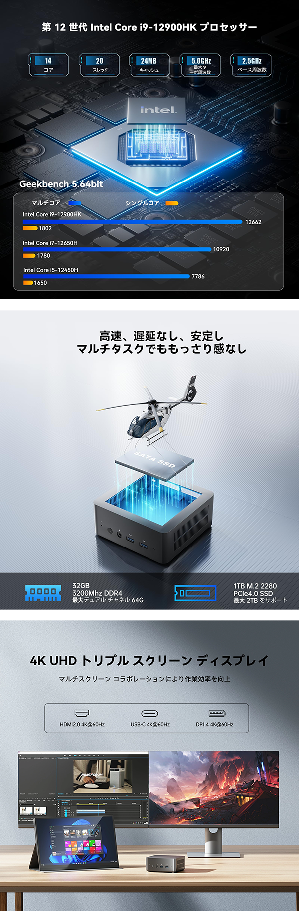▶ 【最大3画面同時出力】Core i9-12900HK メモリ 32GB SSD 1TB