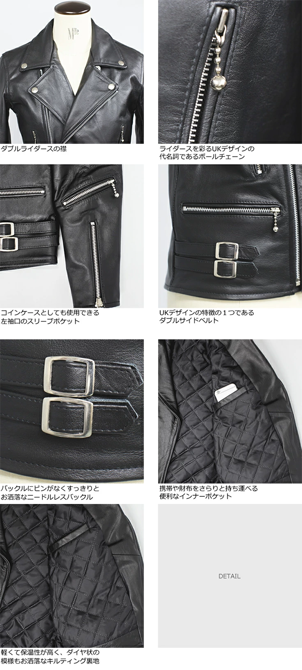 - 数あるライダースの中でもスタイリッシュで有名なイギリスタイプのデザインを採用したライダースです。
