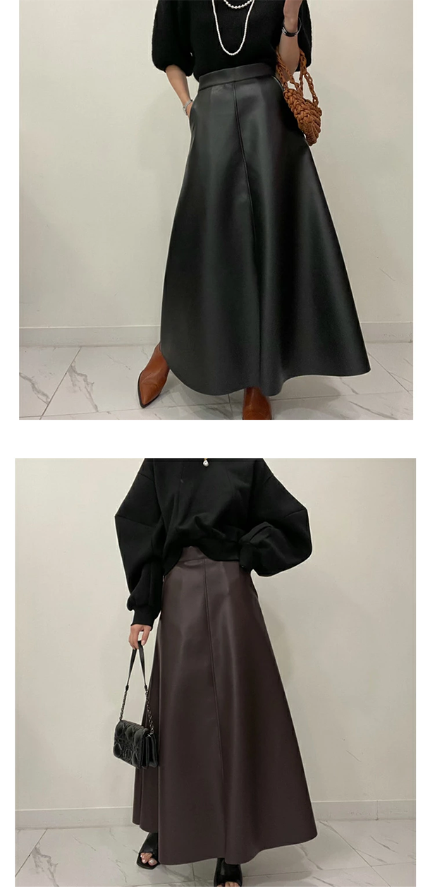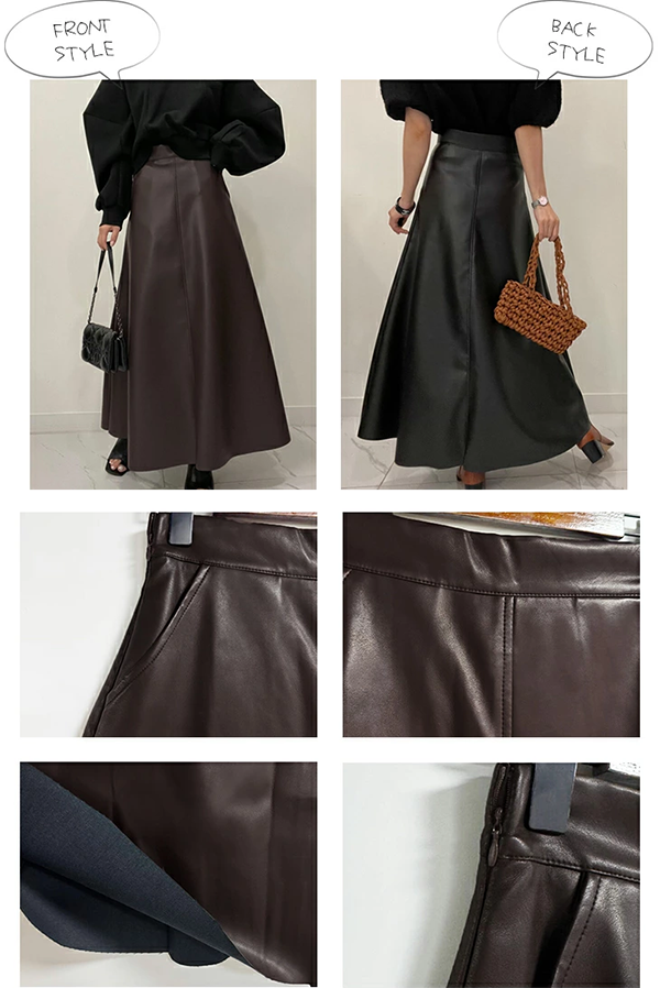 - 上品な艶感としなやかな揺れ感が魅力のフェイクレザー素材のロングスカートです。