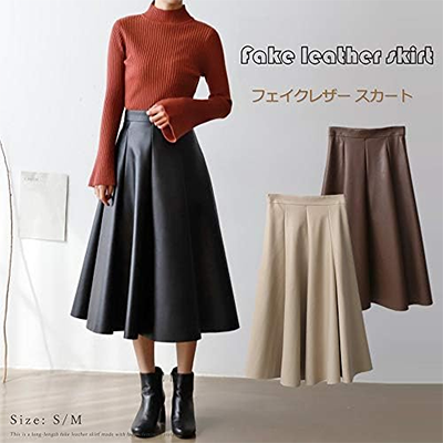 【12/12 55%OFF!3点購入クーポンで】フェイクレザーAラインスカート レディース スカート ロング丈 フレア Aライン フェイクレザー ハイウエスト 大人カジュアル 秋 冬 20代 30代 40代 50代 ワンピスター |