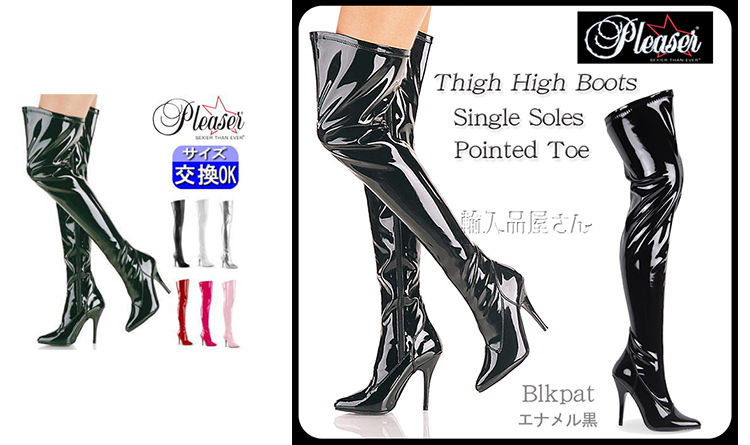 ▶ 楽天市場のサイト: レディース ニーハイ サイハイ ブーツ エナメル ポインテッドトゥ ピンヒール12cm~13cm SEDUCE-3000