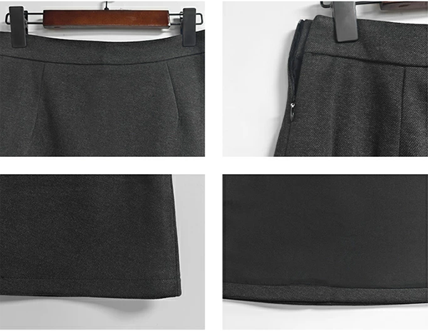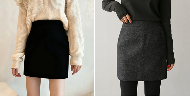 - ハイウエスト仕様で脚長効果が期待できる、シンプルなミニ丈スカート。