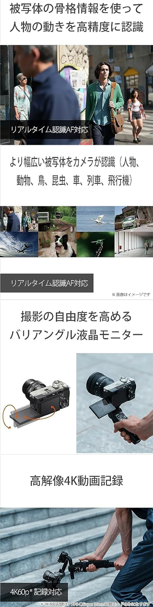 - AIプロセッシングユニットによる被写体認識性能の向上と高速・高精度なAF機能を搭載し、動く被写体にも正確にピントを合わせられます。