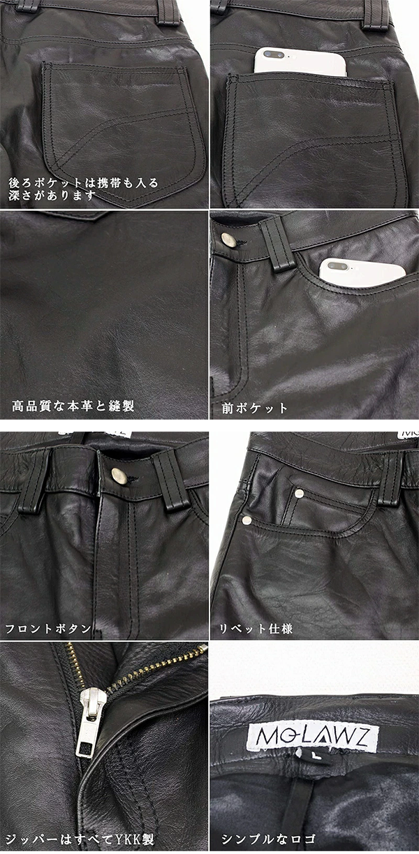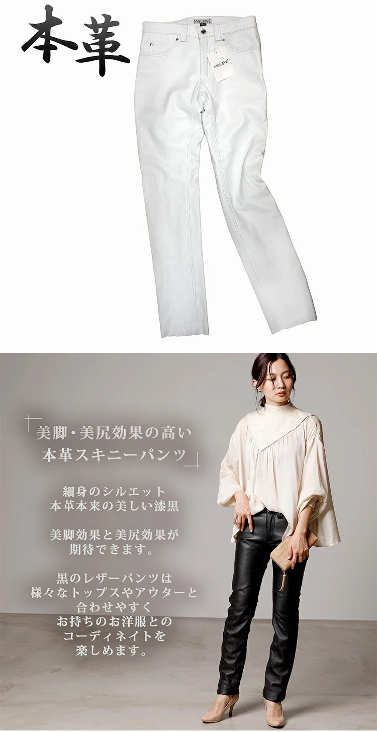 スキニーパンツ レディース レザーパンツ 本革パンツ 大きいサイズ 牛革 mlpt006 黒 mo-laws モローズ 裾上げテープ付き |