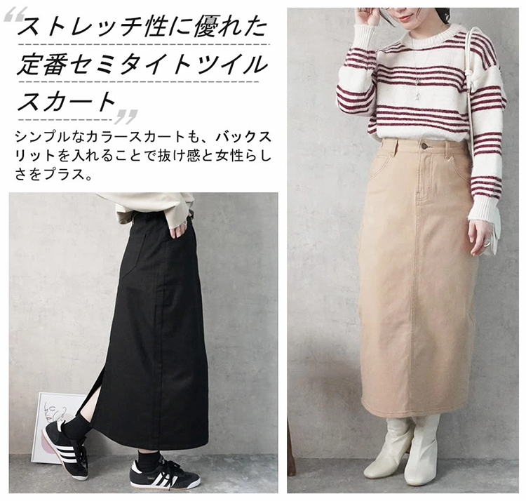 セミタイト ロングスカート ストレッチ ロング丈 マキシ カラー 2025秋冬新作 タイトスカート セミタイトスカート ボトムス 大きいサイズ オールシーズン 春 夏 秋 冬 レディース S M L LL 黒 カーキ ベージュ アイボリー ブラック |