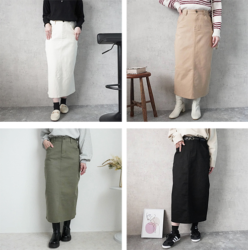- 伸縮性抜群でタイトなのに動きやすい人気の定番デニムスカート