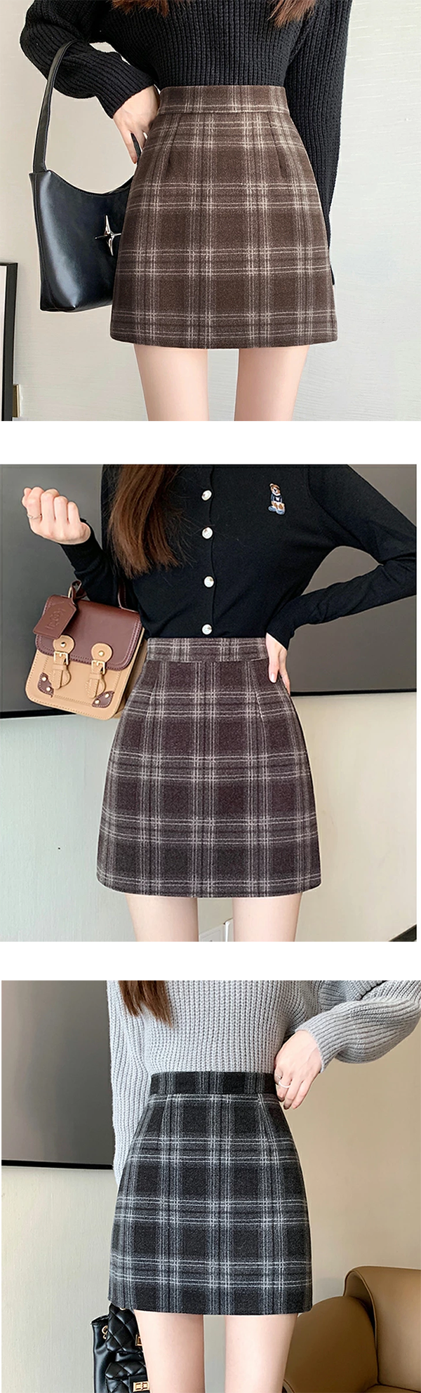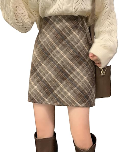 ▶ Amazonのサイト: [PHOLEEY] レディース チェック柄 ミニスカート Aライン ハイウエスト ウール 着痩せ レトロ おしゃれ 厚手 M / L / XL 41-43cm丈