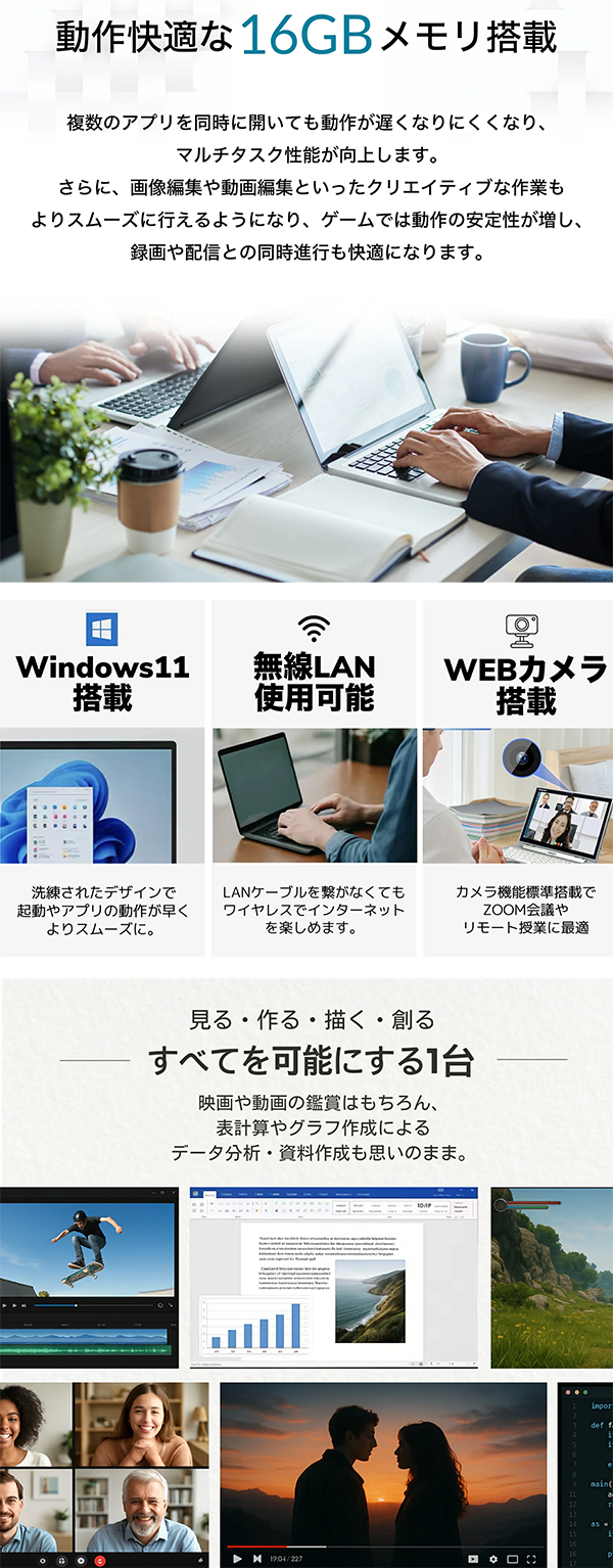 - メインメモリ 【16GB】 大容量!複数作業もサクサク快適