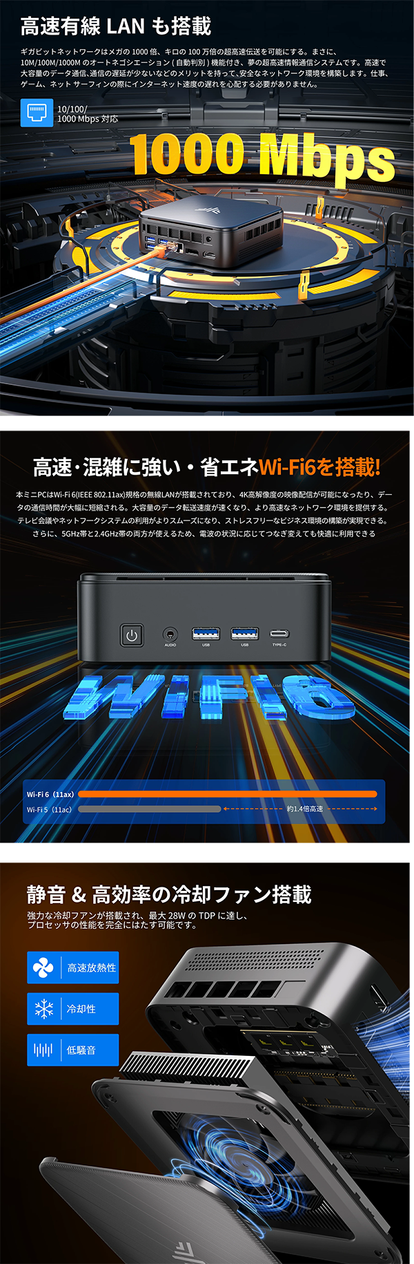 - Wi-Fi 6や3画面同時出力など、機能面も充実しています。