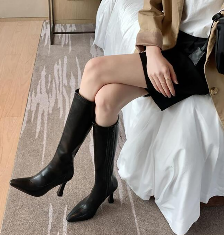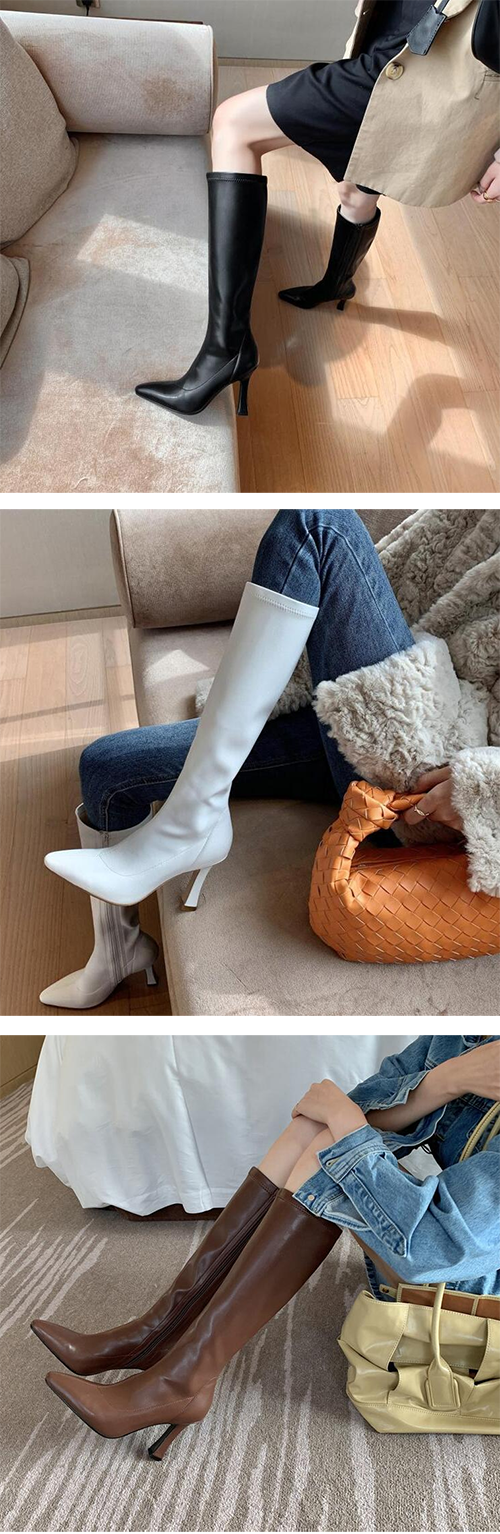 ▶ 楽天市場のサイト: レディース ロング ブーツ ポインテッドトゥ サイドジッパー 太ヒール10cm