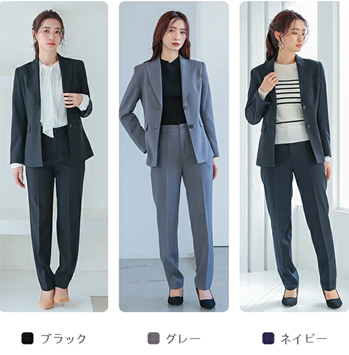 - 微ストレッチ素材が動きやすい余裕を与え、すっきりとしたシルエットで、仕事への気持ちも引き締まる“きれいめ”な印象を実現。