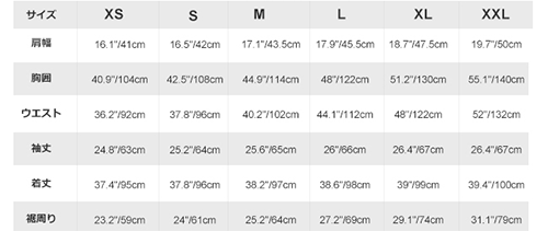 【サイズ】 ・XS /S / M / L / XL / 2XL