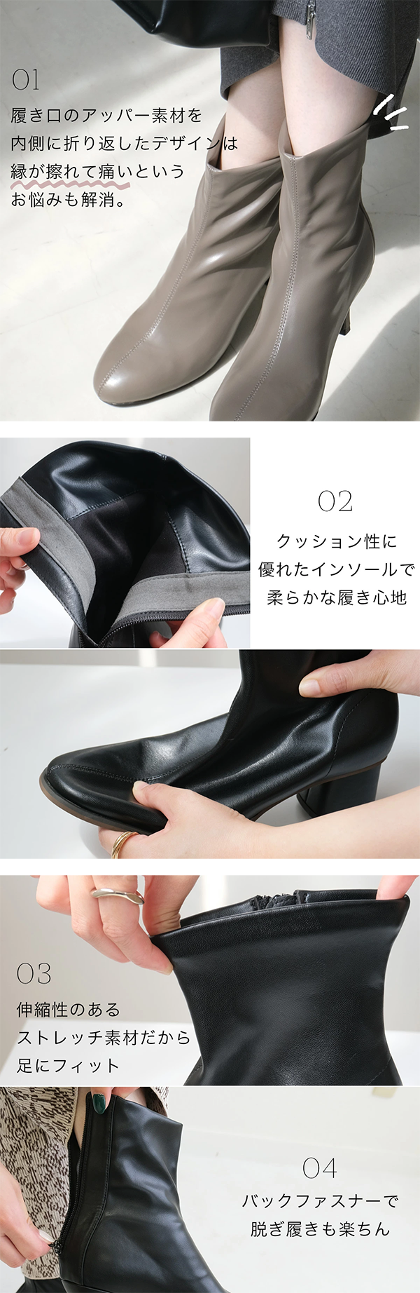 ▶ ストレッチ素材で足にフィット!ストレスのない快適な履き心地のショートブーツ