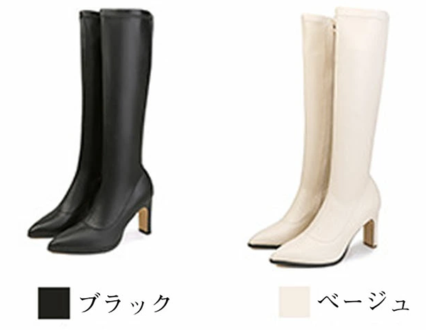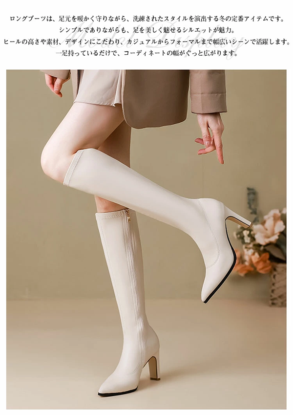 ◎レディース ロング ブーツ ポインテッドトゥ ファスナー ヒール8cm