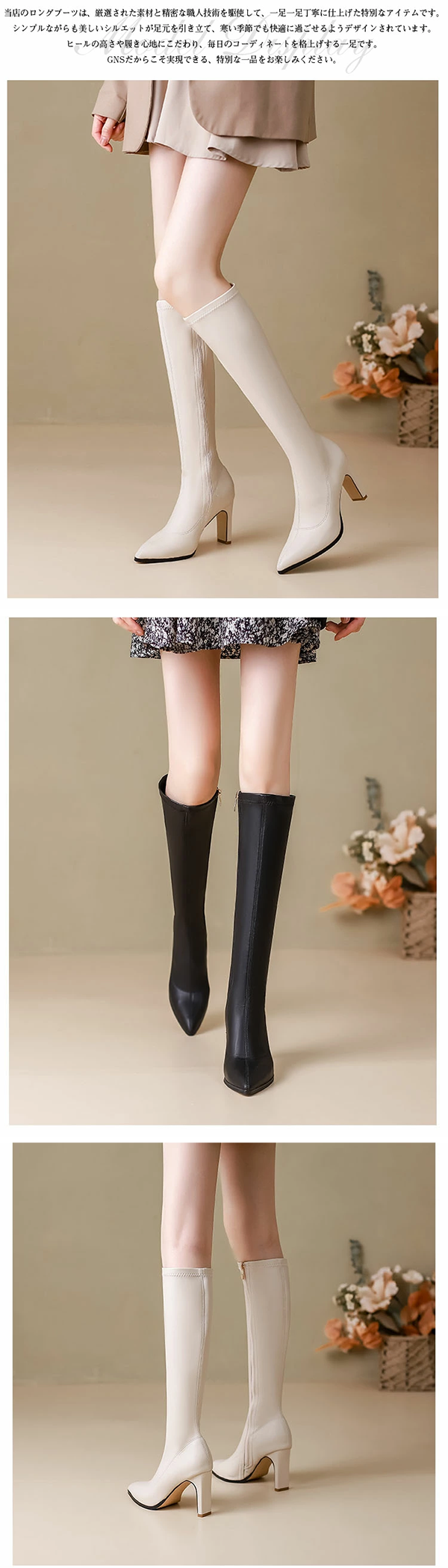 ▶ 楽天市場のサイト: レディース ロング ブーツ ポインテッドトゥ ファスナー ヒール8cm 完全防水 GNS