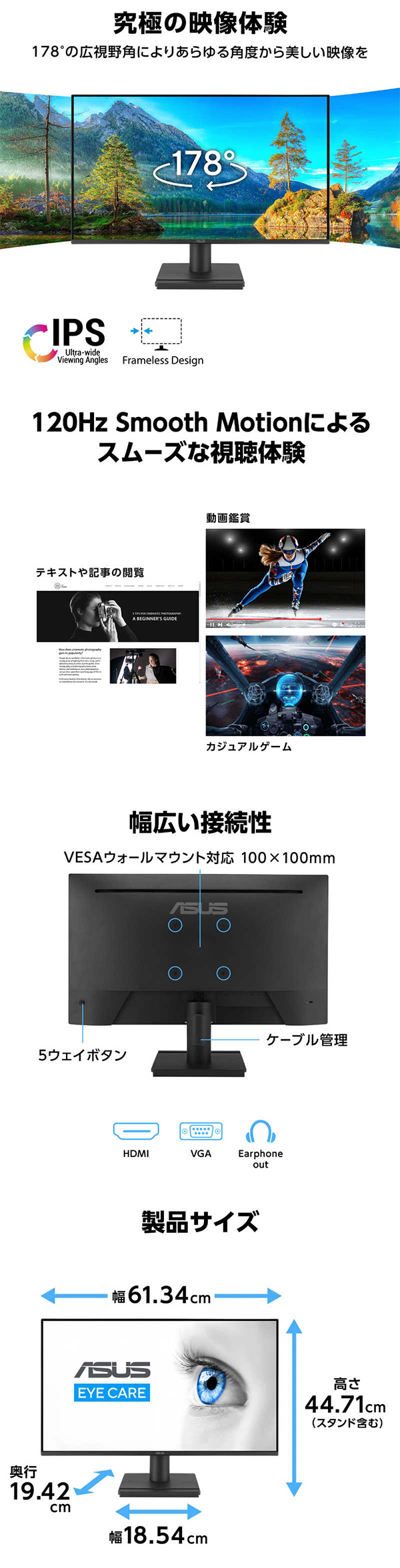 Toggle【商品の説明】新品 液晶モニター ディスプレイ Eye Care VA279HG 27型 ASUS