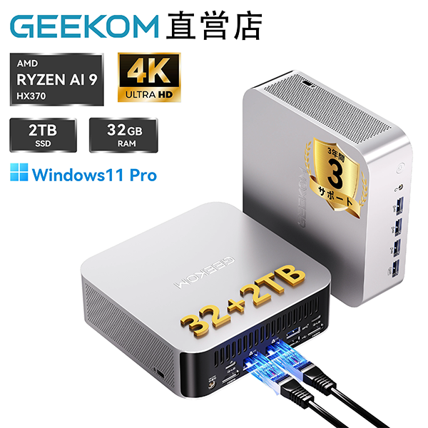 - GEEKOM A9 Maxは、最新のAMD Ryzen AI 9 HX 370プロセッサーとRadeon 890Mグラフィックスを搭載し、優れたパフォーマンスと豊富な接続性を実現しています。