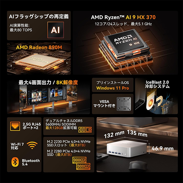 - 【AI性能の新基準——AI処理能力最大80 TOPS】GEEKOMのフラグシップモデル。