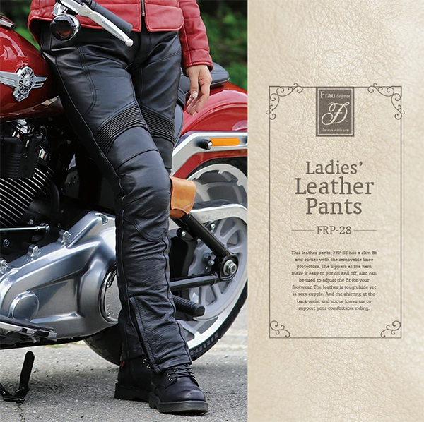- DEGNER(デグナー)のレディース向けレザーパンツ「FRP-28」は、牛革製のスキニータイプで、安全性を高めるプロテクターを標準装備しています。