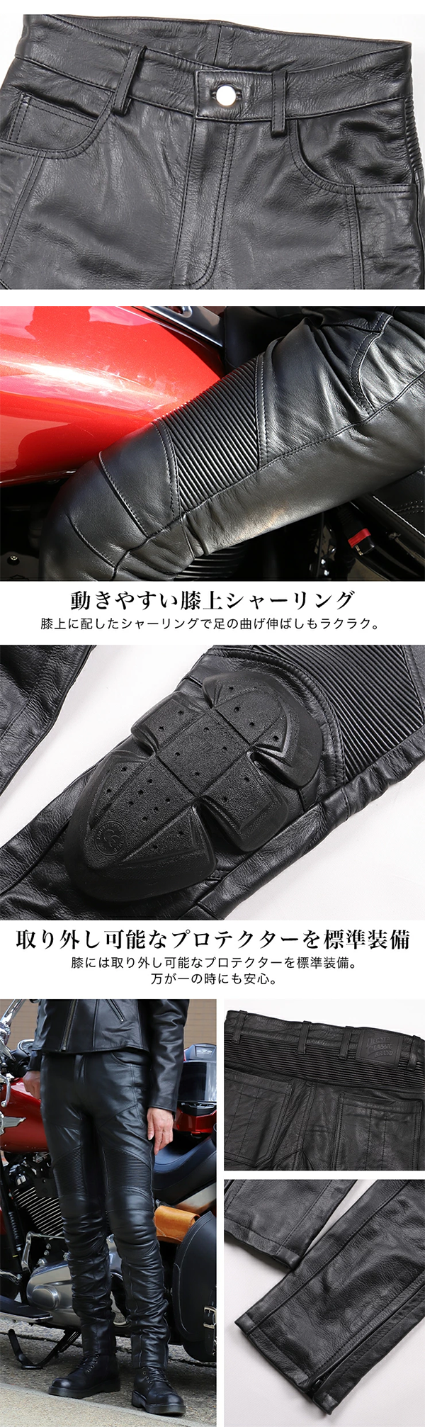 ◎レディース 本革 レザー ライダース パンツ プロテクター デグナー