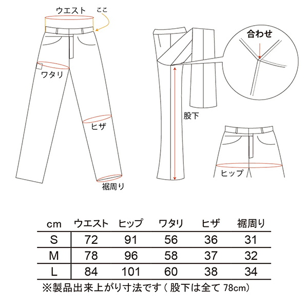 - 走行時のライディングポジションを考慮し、膝上と腰にシャーリング(伸縮性のある加工)が施されており、動きやすさを確保しています。