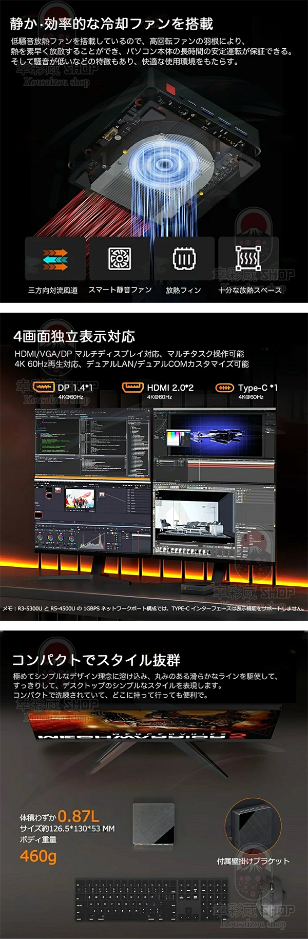 ▶ 【MiniPC 4画面同時出力】iRUKA メモリ 8/16GB SSD 256GB/512GB/1TB