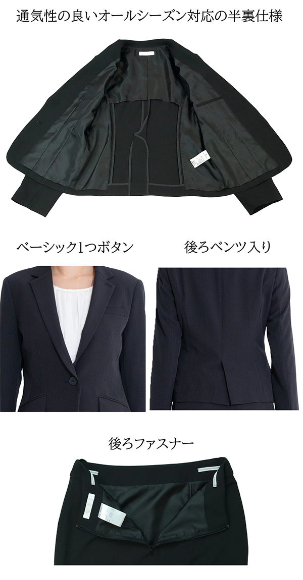 - ジャケット 通気性の良いオールシーズン対応の半裏仕様・ベーシック1ボタン・後ろベンツ入り