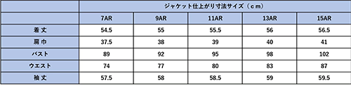 ●ジャケット ・7号(S) ・9号(M) ・11号(L) ・13号(LL) ・15号(3L)