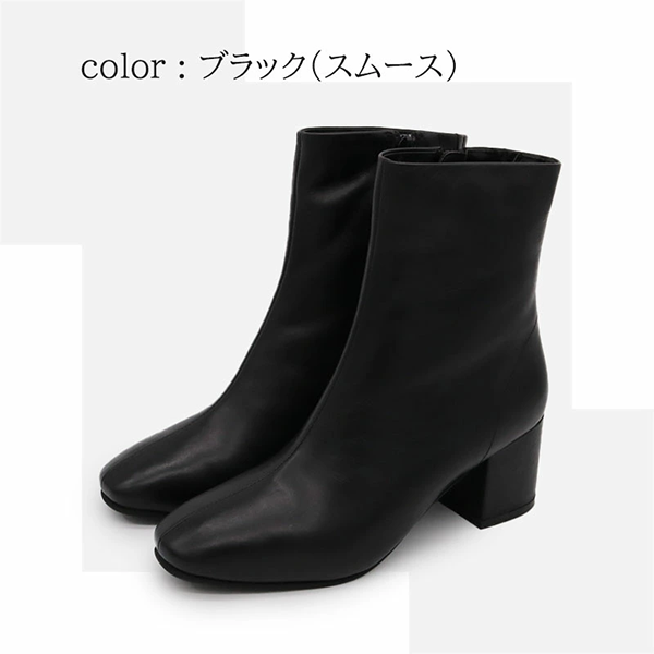 ◎レディース ショートブーツ レザー 本革 スクエアトゥ 6cmヒール