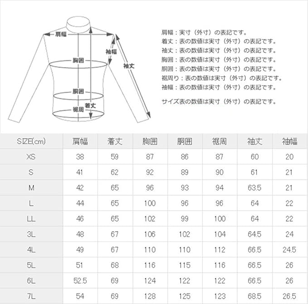 【サイズ】 ・XS /S / M / L / LL / 3L / 4L / 5L /6L / 7L