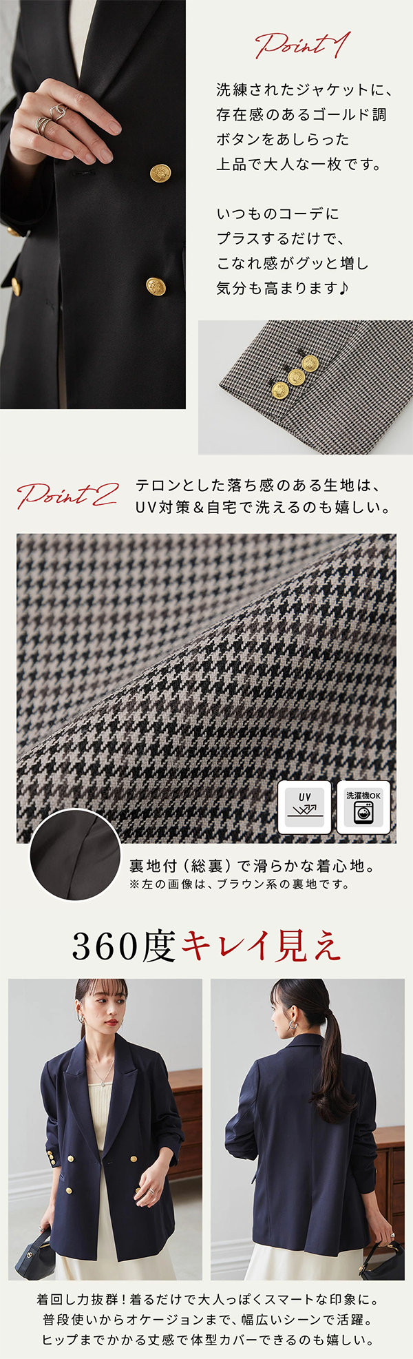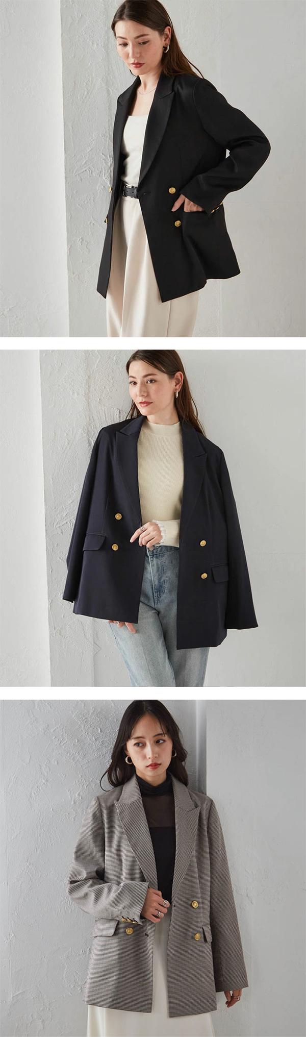 - ・上品な雰囲気を演出してくれるゴールド釦をあしらったジャケット。