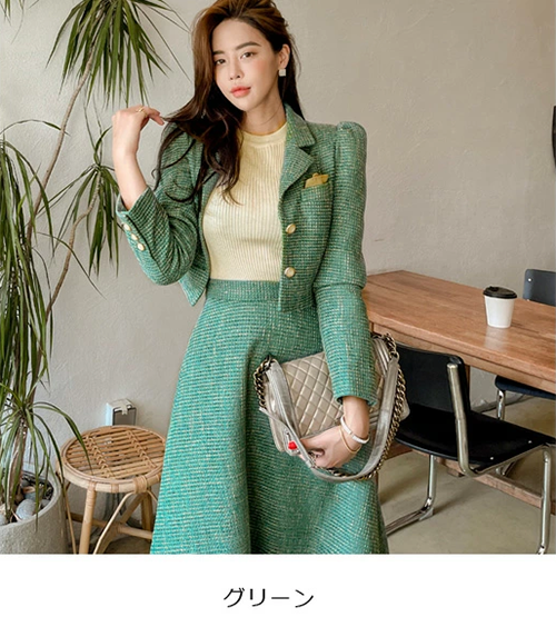 ▶ 楽天市場のサイト: レディース ツイード セットアップ ジャケット ロングフレアスカート JSfashion