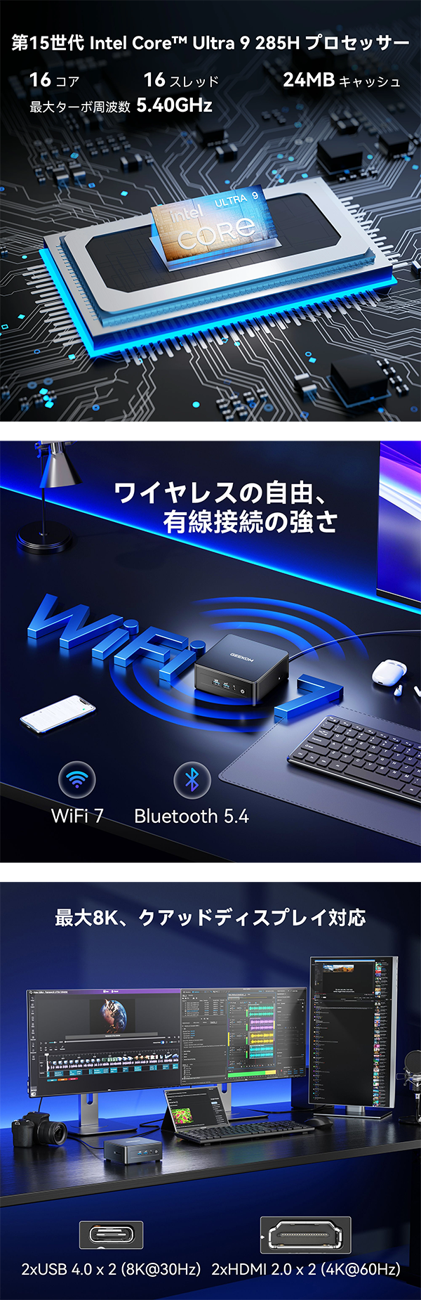 ▶ 【プロフェッショナルの要求に応えるマシン】MiniPC Core U9 285H メモリ 32GB SSD 2TB