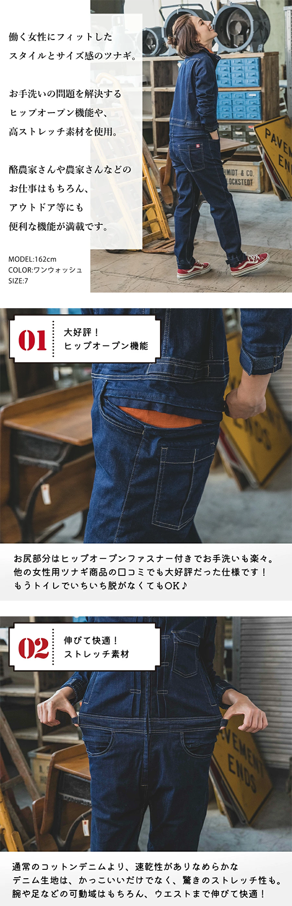 - 多くの女性の味方となったヒップオープン機能は当然の事、細部に宿らせた細やかな便利機能で、真の働く女性の味方になるツナギです。