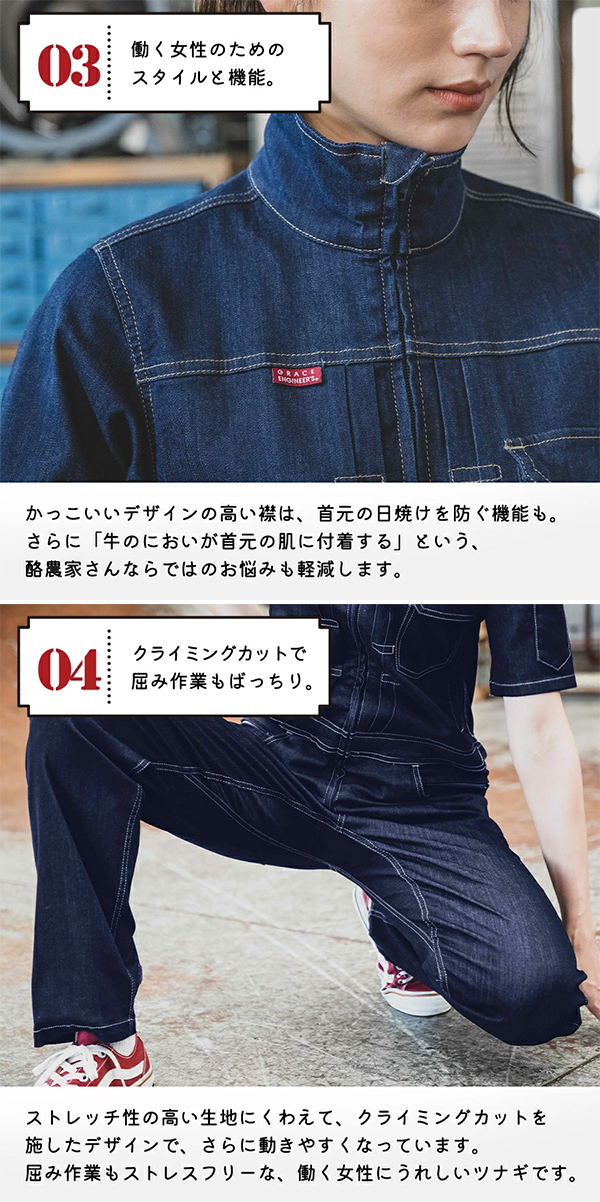 グレイスエンジニアーズ デアリーウーマンツナギ GE-650 GE-651 レディース 女性用 キッズ ジュニア 子供用 親子 デニム ヒップオープン おしゃれ 酪農 作業服 |